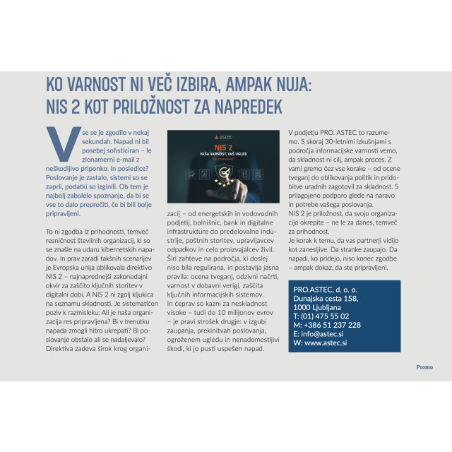 Za več info o NIS 2 in o tem, ali tudi vi sodite v krog zavezancev, smo vam na voljo na info@astec.si.